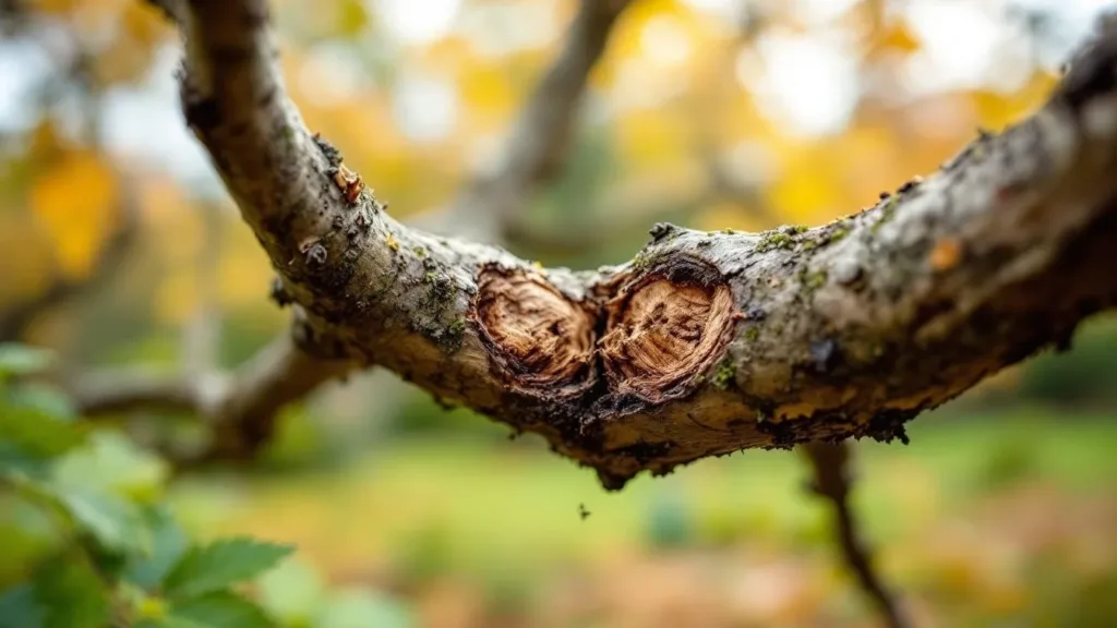 Kruisende takken die nu tegen elkaar schuren veroorzaken wonden waar ziektes binnenkomen
